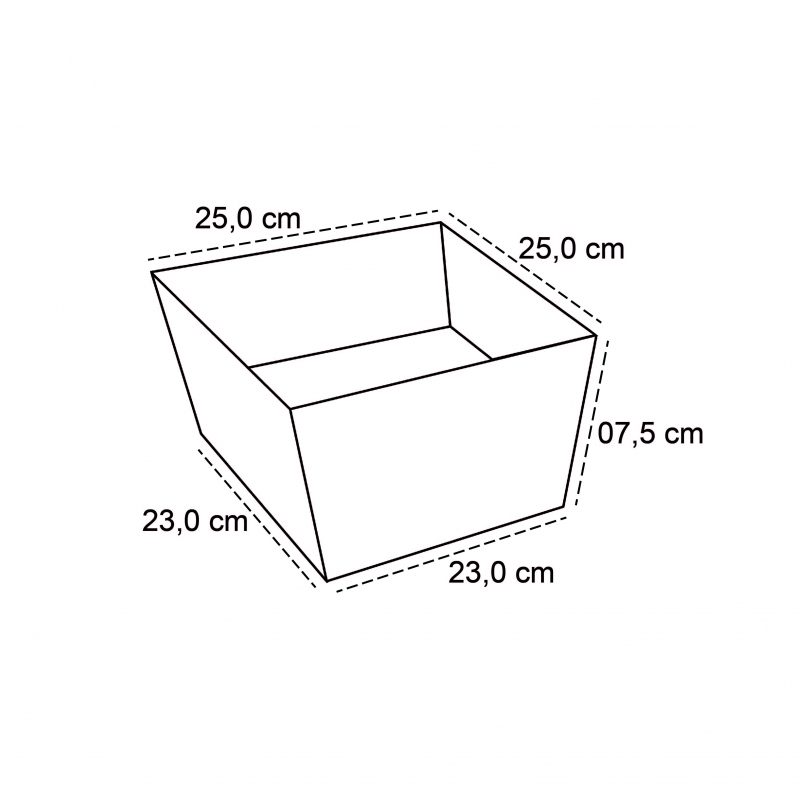 25,0 CM X 25,0 CM COM 07,5 CM ALTURASEM FORRAÇÃO INTERNA