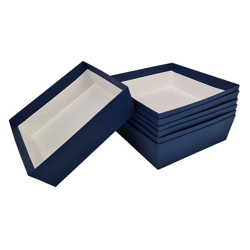 Sem revestimento interno, acabamento será conforme o papelão utilizado na confecção da caixa, podendo variar entre cinza simples ou branco simples |